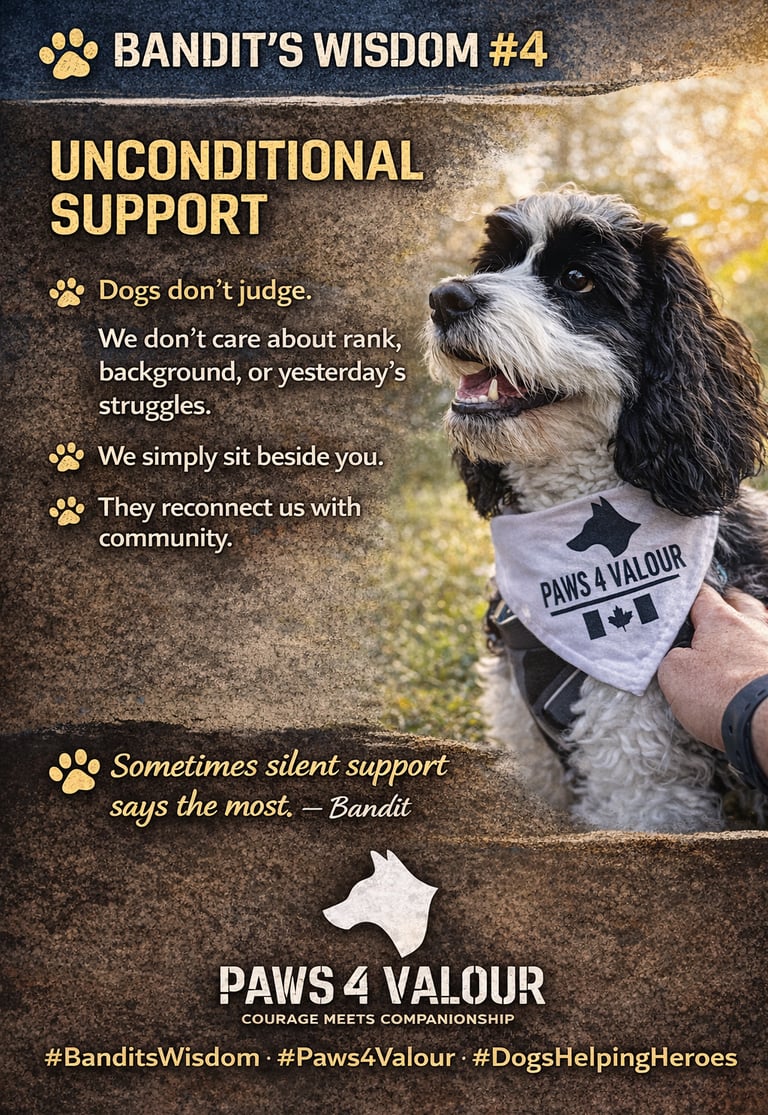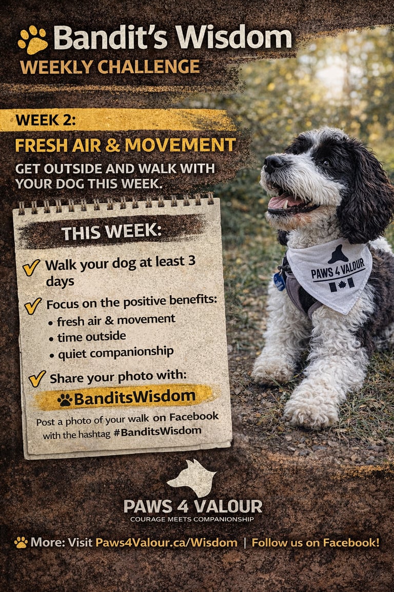 A Paws 4 Valour educational series sharing simple ways dogs can support veteran, first responder, and family mental health — especially for those unable to attend training in person.